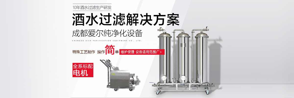 成都愛爾純凈化設備有限公司,坐落于美麗的天府之國,成都市溫江區海峽科技園工業區,專業從事于過濾、凈化技術的研發應用,產品有保健酒過濾設備、白酒過濾設備、白酒凈化設備、水凈化設備等,公司引進世界先進過濾分子技術,結合專業技術人員資深多年實踐經驗,解決酒類、飲水類后期處理難題。 業務涵蓋,酒類過濾:除混濁沉淀,澄清處理、除苦味,異雜味,新酒催熟陳化處理 、除塑化劑、固形物、雜醇油、甲醇及各類含量超標后期處理。 水類:軟水、純凈水、礦泉水、飲料等凈化處理。用心為客戶提高生產效率、提高產品質量、降低生產成本、環保減排而開發創新,堅持奮斗。 公司至誠每一位客戶,“誠信服務,客戶至上”為宗旨,為客戶要求,用心凈化每一點滴,我們都將以精準的數據化設計、嚴格的設備制作質量把關、快捷專業的安裝調試以及周到的售后服務,解決客戶生產過程中遇見的各種酒、水后期處理的技術難題。